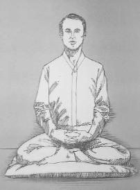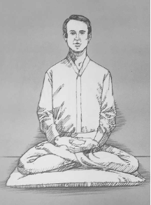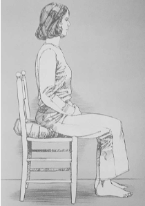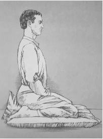 Fig. 7. Vista lateral de zazen en una silla de respaldo recto, con un cojín bajo las nalgas y los pies apoyados firmemente en el suelo a la anchura de los hombros.